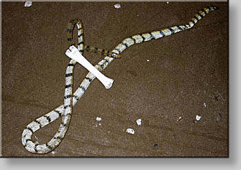 The turtle on the photos might have been hit by a boat propeller. The sea snake